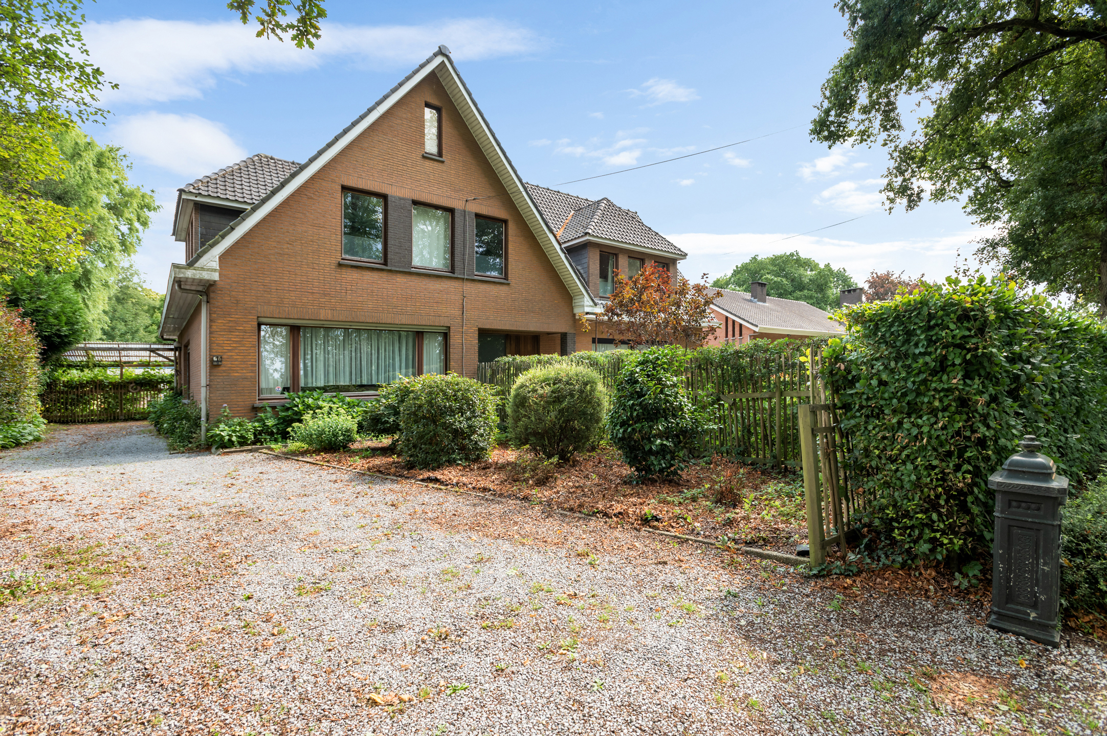 In één van de mooiste straten van Kalmthout vindt u deze uitzonderlijke tweewoonst met een totale vloeroppervlakte van ca. 400m² en maar liefst 9 slaapkamers. Perfect voor wie veel ruimte zoekt, wil samenwonen of de voordelen van een dubbele woning wil benutten. Aan de voorzijde geniet u van een prachtig open zicht op uitgestrekte weilanden, aan de achterzijde grenst het perceel rechtstreeks aan het wereldberoemde Arboretum van Kalmthout.