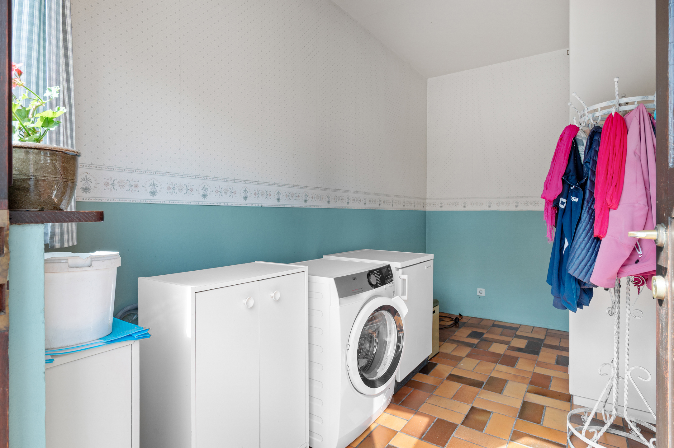 - Aansluitende inkomhal achteraan (8m²) met opbergkasten en voorzieningen wasmachine/droogkast.
