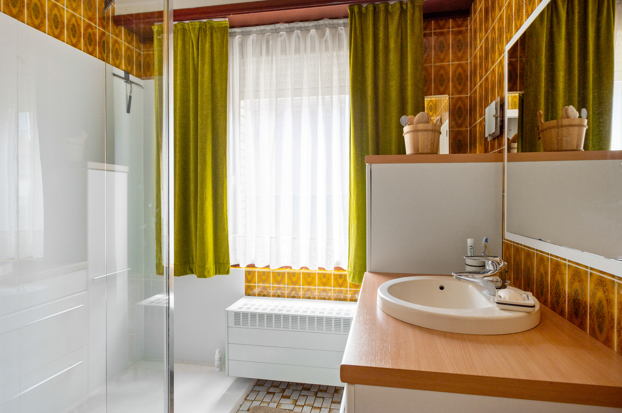 - Vernieuwde badkamer (5m²) met inloopdouche en wastafel met meubel.
