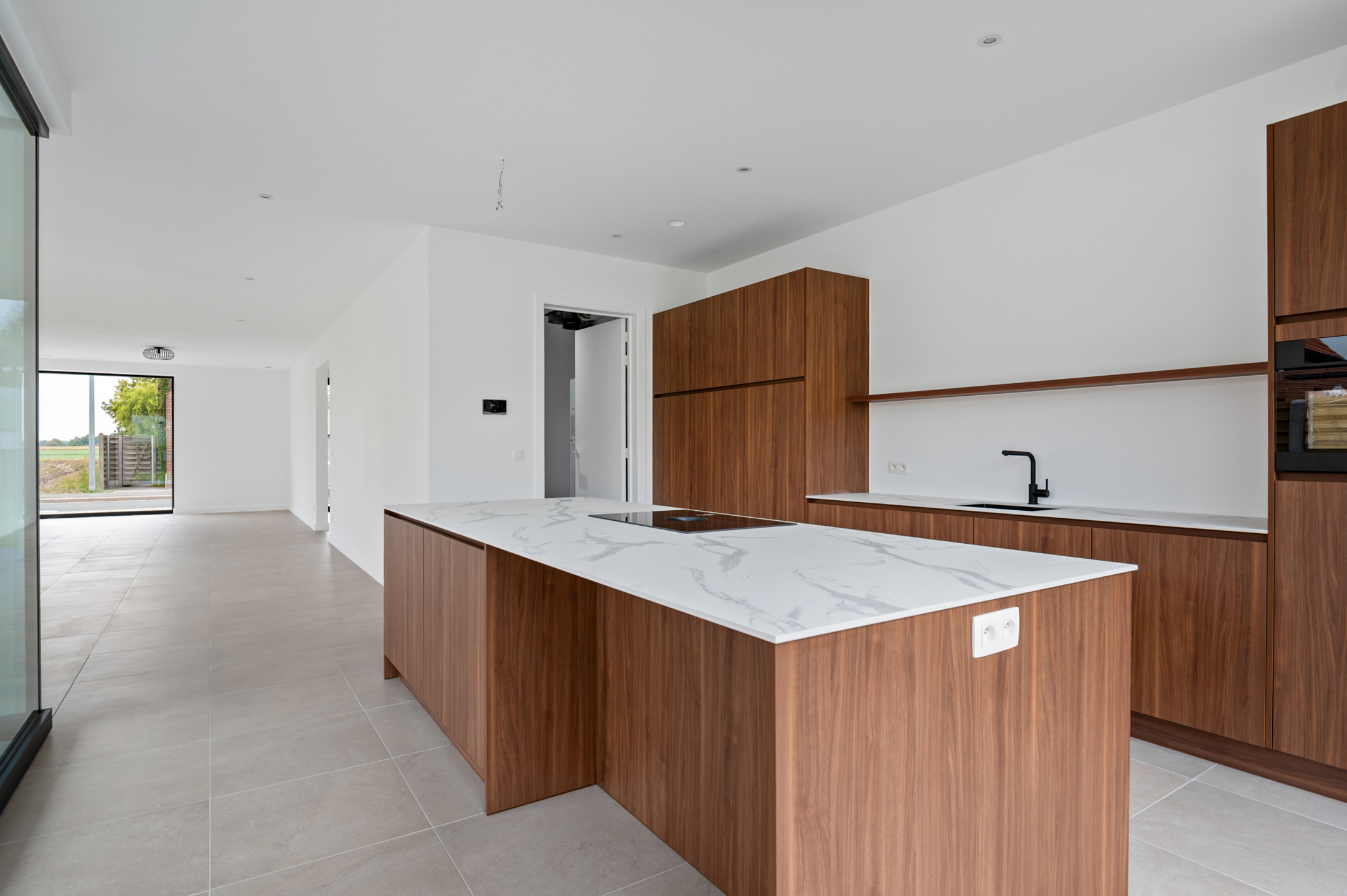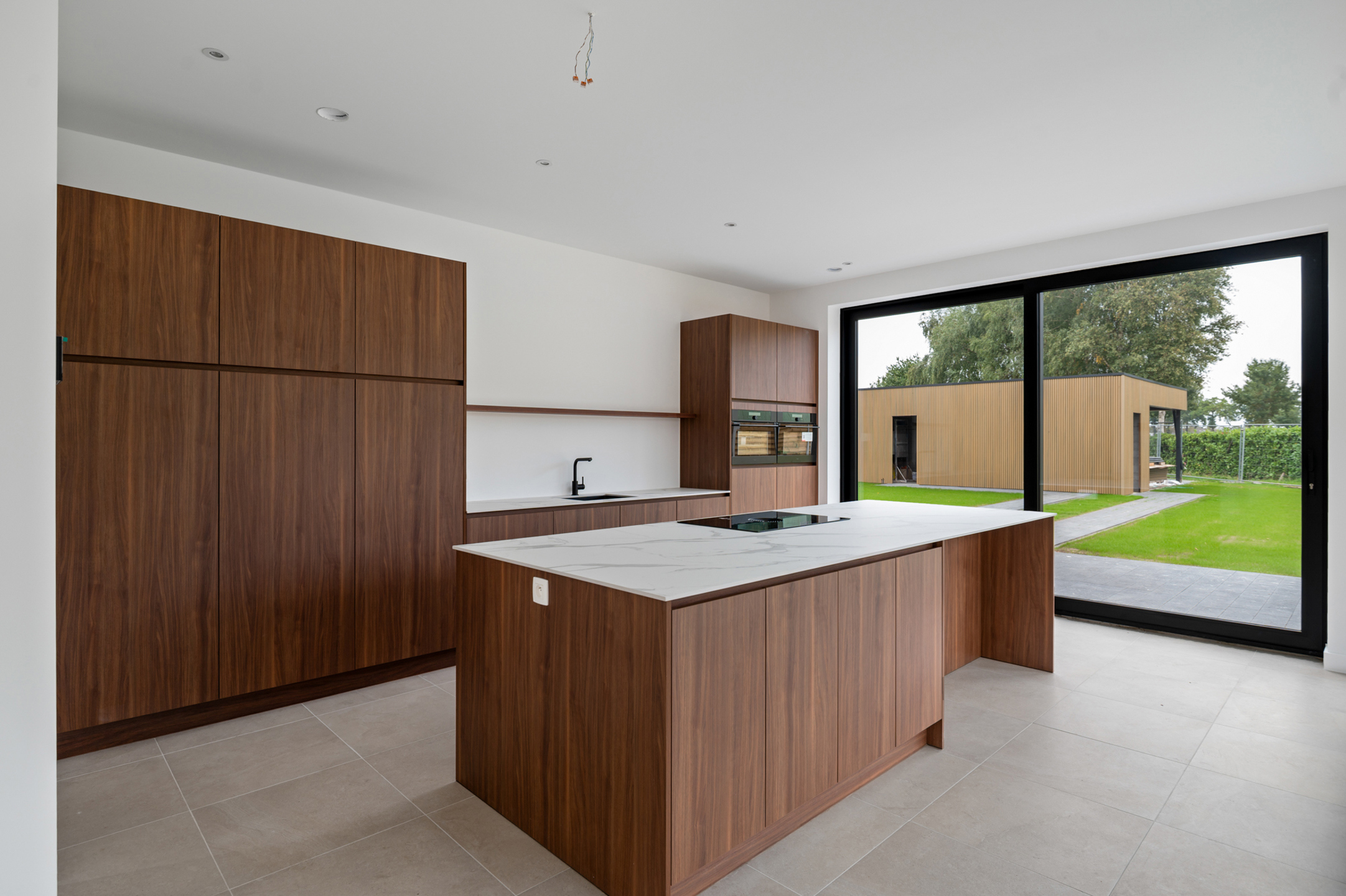 - Leefkeuken (22,50m² - Keukens Konings) werd luxueus afgewerkt en is voorzien van o.a. een vaatwasser, een inductievuur met BORA-dampkap, stenen werkblad, combinatie oven/microgolf, 2de oven, koelkast, een ontbijthoek, en veel tablet- en kastruimte.