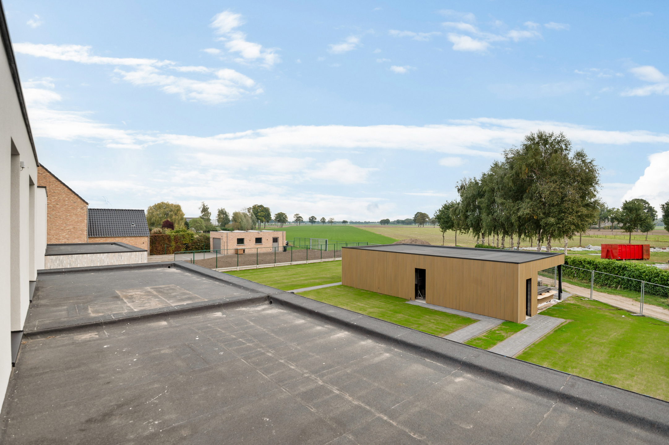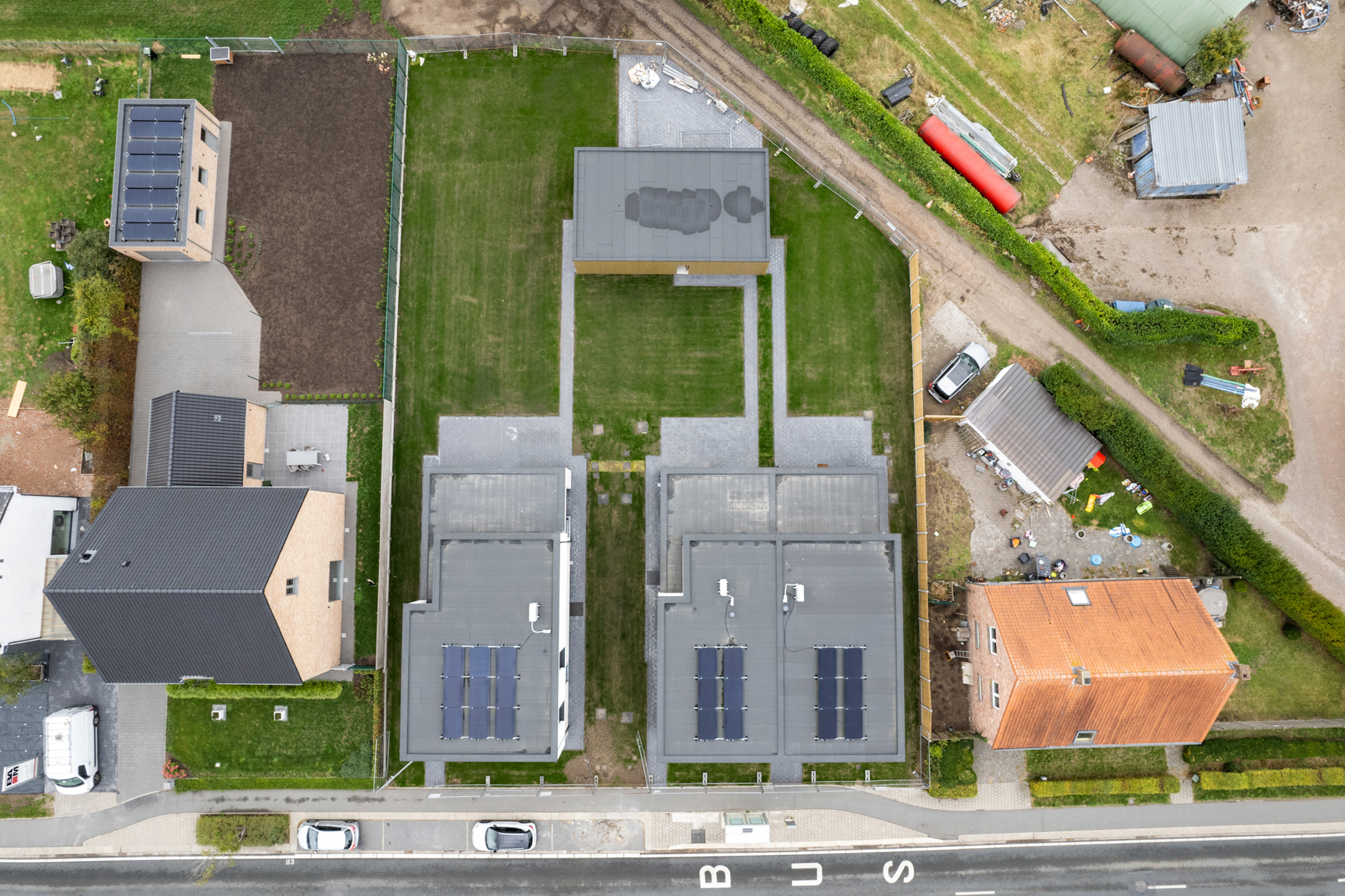 Moderne en ruime HOB nieuwbouwwoning op een perceel van 422m² met een fraai uitzicht over de achtergelegen weilanden! De lichtrijke gezinswoning is opgericht met duurzame, luxueuze materialen en bevat o.a. een grote leefruimte met open keuken, drie riante slaapkamers, mogelijkheid voor bureau, een modern ingerichte badkamer en veel opbergruimte! De tuin rondom is reeds voorzien van verzorgd klinkerwerk, werd ingezaaid en is achteraan nog voorzien van een afgesloten tuinberging en een overdekte autostaanplaats! EPC A - E-peil 19