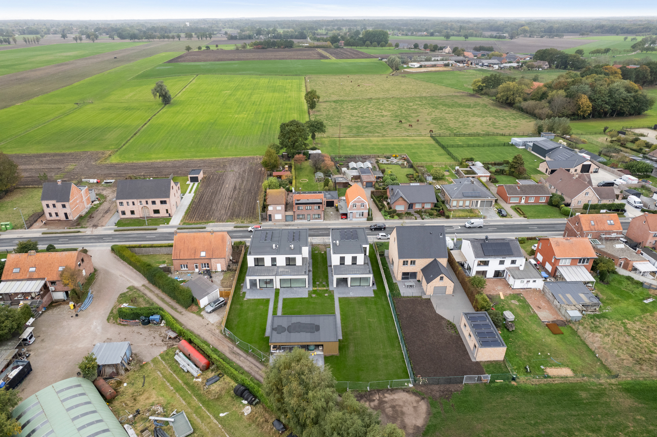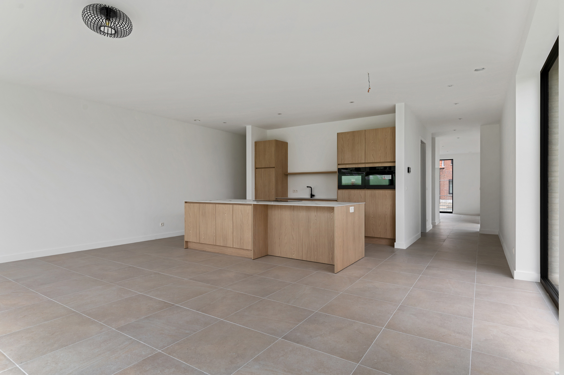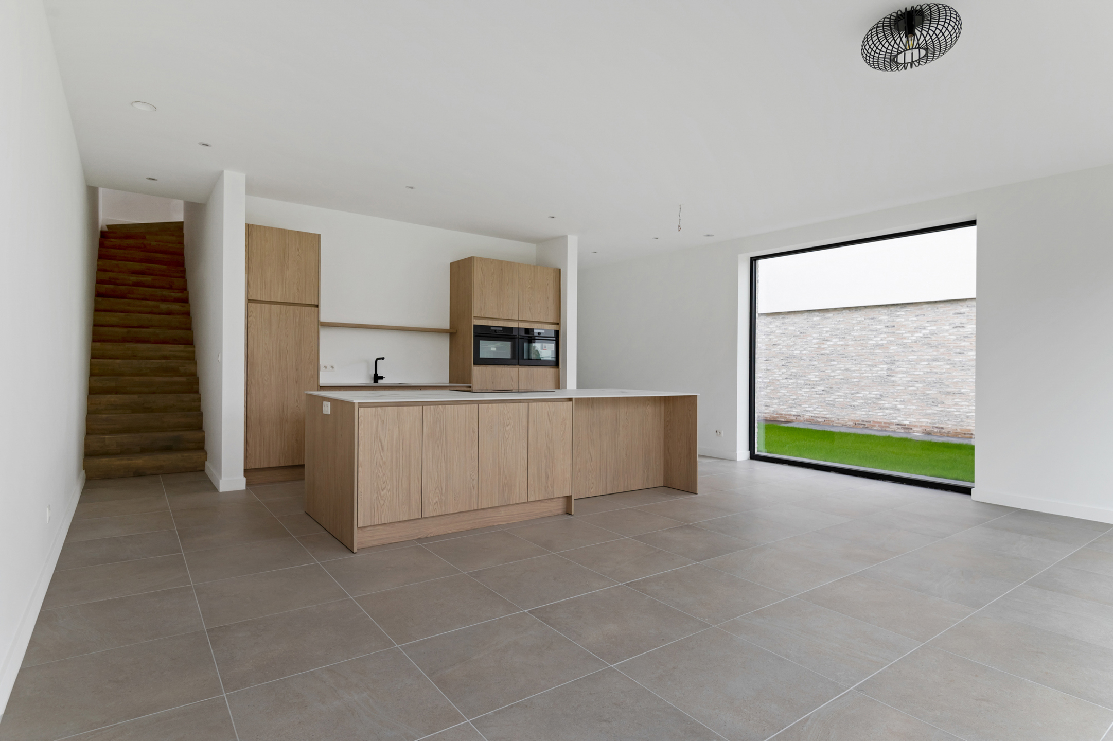 Moderne en ruime HOB nieuwbouwwoning op landelijke locatie en met een fraai uitzicht over de achtergelegen weilanden! De lichtrijke gezinswoning is opgericht met duurzame, luxueuze materialen en bevat o.a. een afzonderlijke leefruimte, een grote keuken met zicht op de achtertuin, drie riante slaapkamers, mogelijkheid voor een bureau en een modern ingerichte badkamer. De tuin rondom is reeds voorzien van verzorgd klinkerwerk, werd ingezaaid en is achteraan nog voorzien van een afgesloten tuinberging en een overdekte autostaanplaats! EPC A - E-peil 17