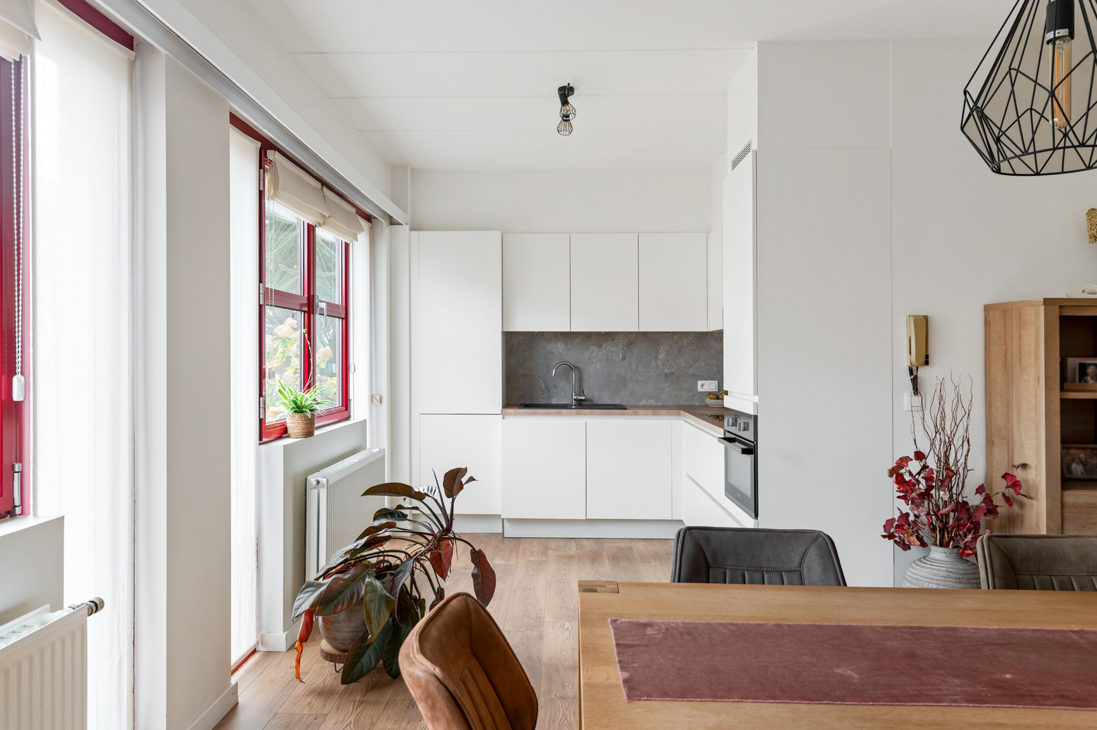 - Het appartement bevat verrassend hoge plafonds.