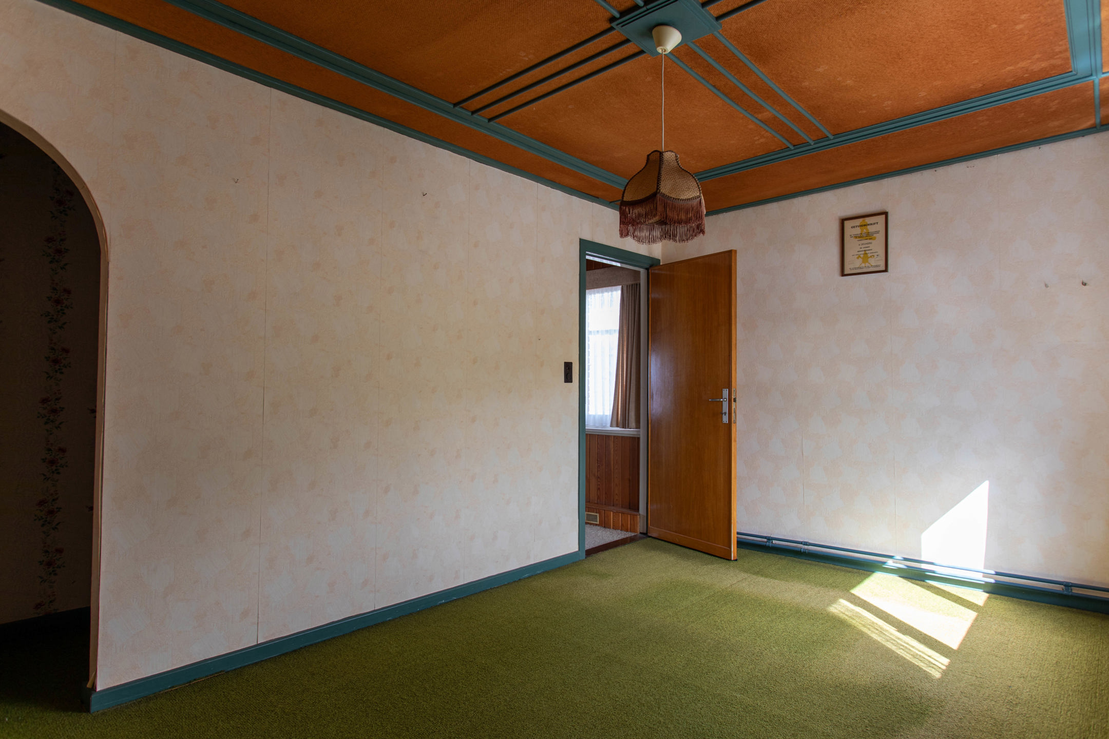 De eerste verdieping telt twee slaapkamers. De ruimtes bieden voldoende mogelijkheden om er met de juiste aanpak een comfortabele woning van te maken.