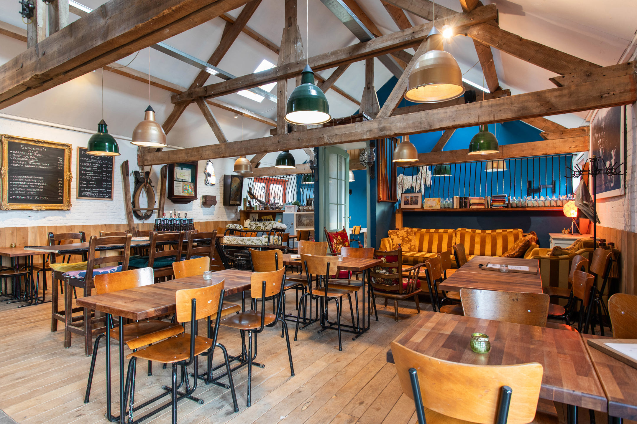Je betreedt het pand via de inkom langs de straatzijde waarbij je direct de horecazaak binnenstapt. Deze bestaat uit een leuke verbruikszaal voorzien van een toog. Rechts van de toog vind je de keuken, momenteel ingericht met de gebruikelijke toestellen. Via een luik met valtrap heb je via de keuken toegang tot de (technische) berging. Rechts van de toog vind je een achterinkom met toegang naar het sanitair gedeelte bestaande uit heren- en dames toiletten.