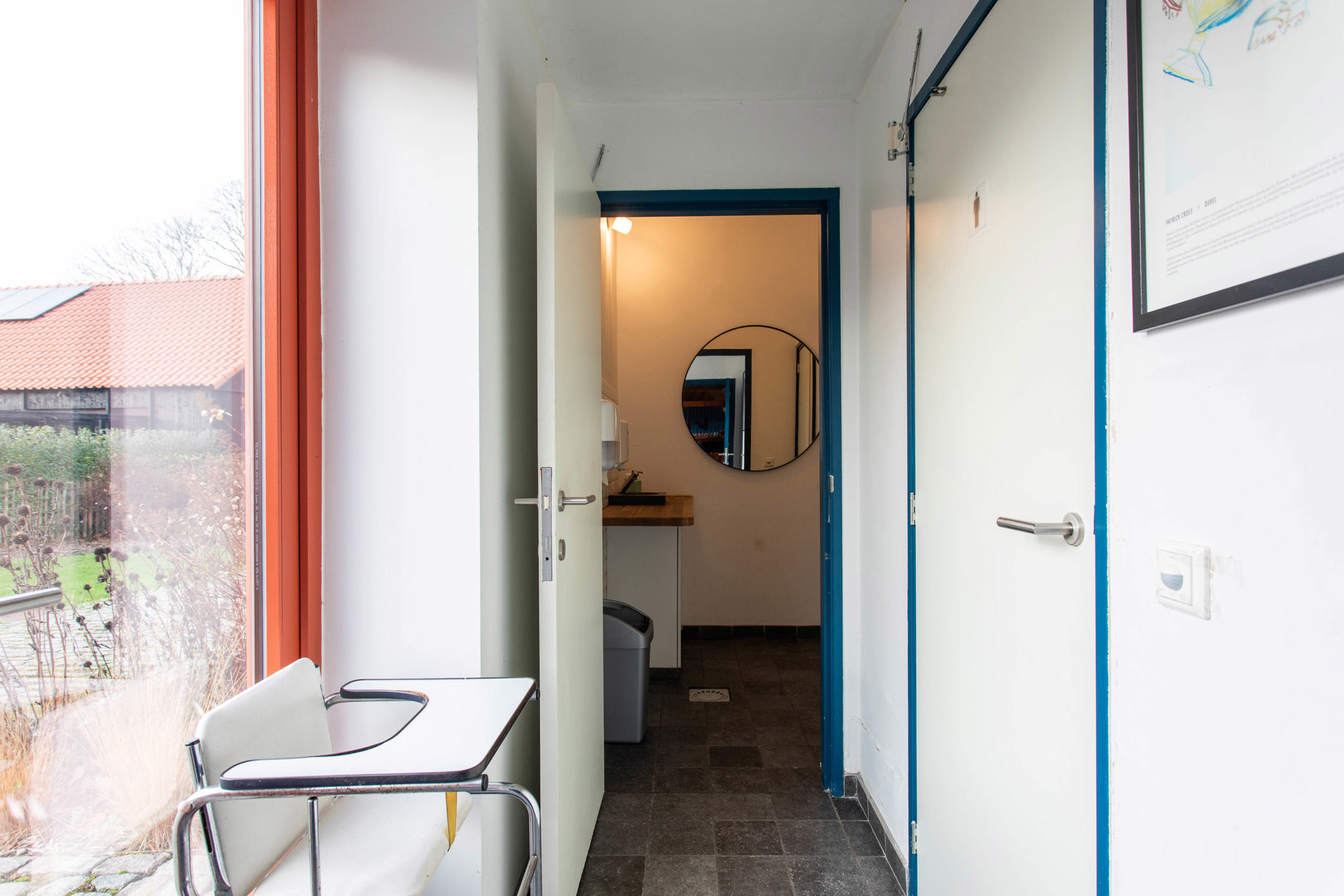 - Santitair gedeelte met gescheiden toiletten voor dames en heren