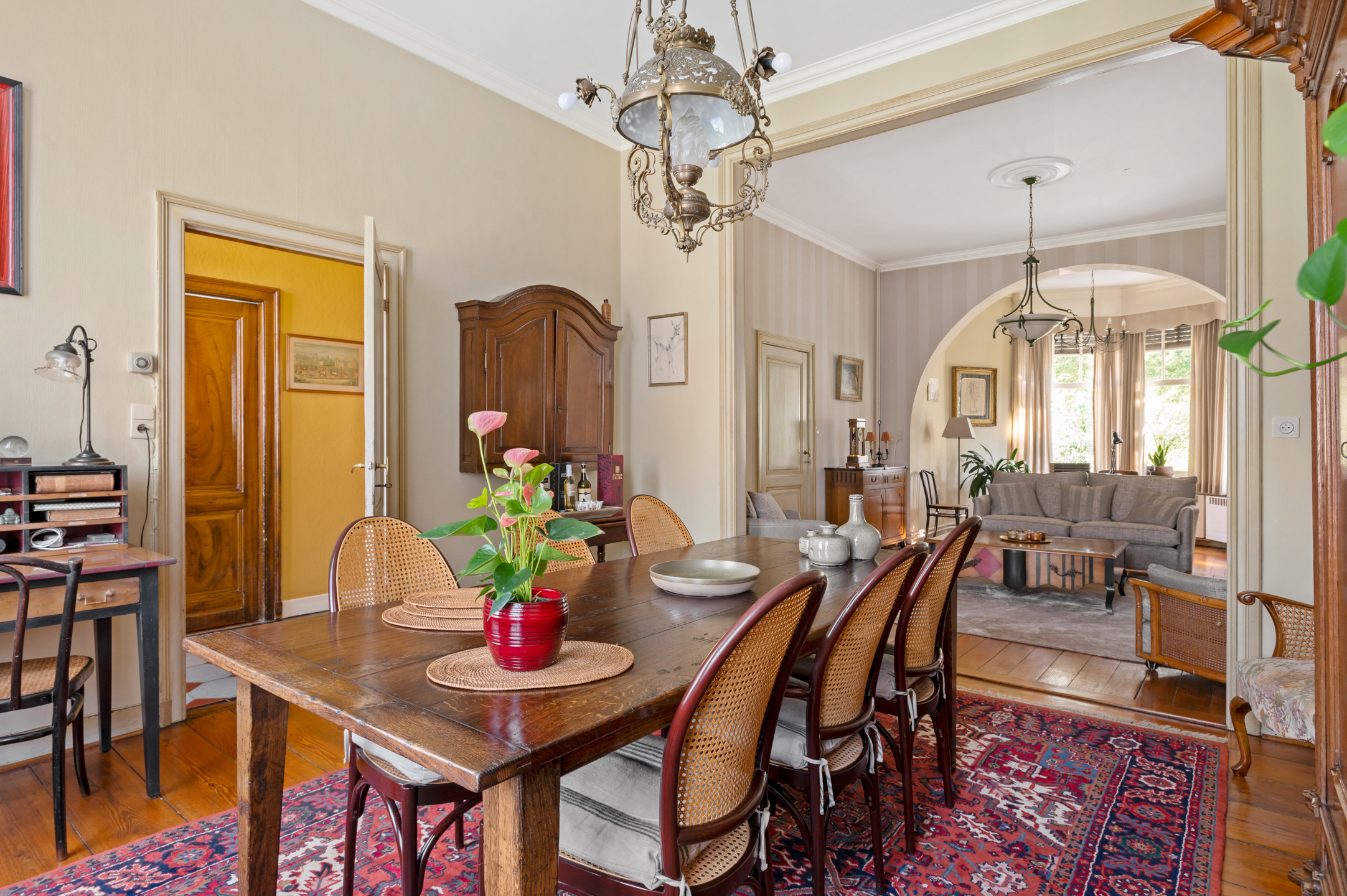 De herenwoning bezit nog veel authentieke elementen en voelt zeer aangenaam aan door de mooie plafondhoogte!
