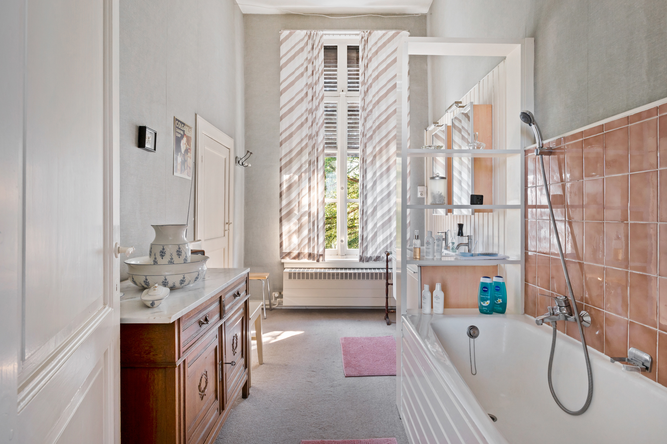 • Vernieuwde badkamer (ca. 9,4m²) voorzien van ligbad, 2 wastafels in een badkamermeubel met bijhorende spiegels.